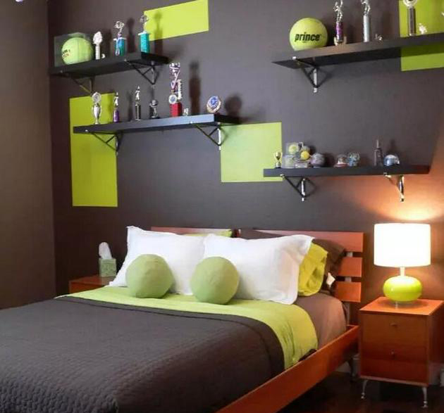 這深灰色的房間對于網(wǎng)球上的黃色來說是一個很好的背景。黃綠色的溫暖與中性灰色呈現(xiàn)出完美地搭配。